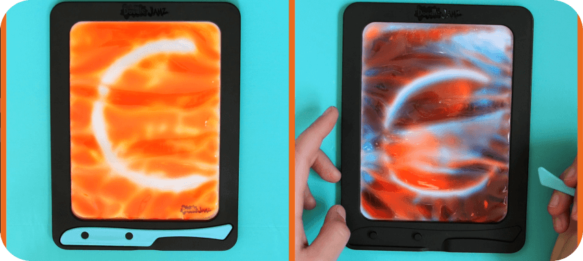 Squish, shape and create art! JellyBoards are filled with two separate layers of colored, non-toxic gel that is vacuum-sealed so drawings stay in place. Draw with fingers or with the stylus to blend the colors together and create one-of-a-kind artistic creations!