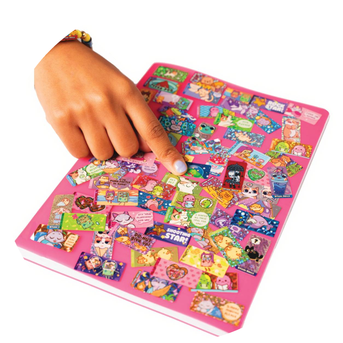 Inside every pack are 2 extra MYSTERY Sticki Rolls that are super rare or ULTRA rare to "unbox" and discover! Each rarity level contains a different mesmerizing holographic effect. 70 total Stickers included!