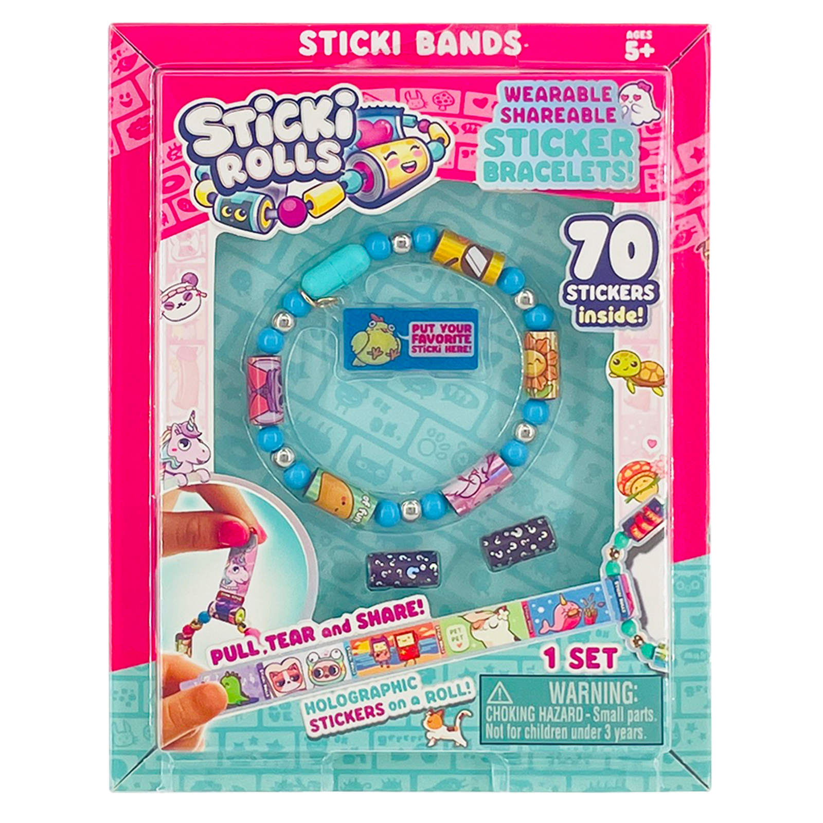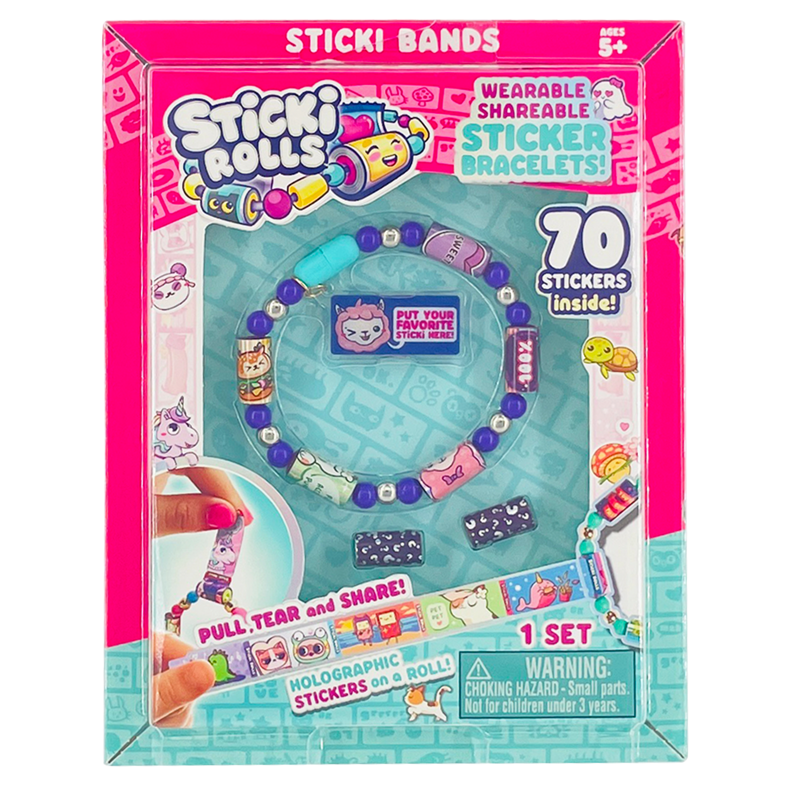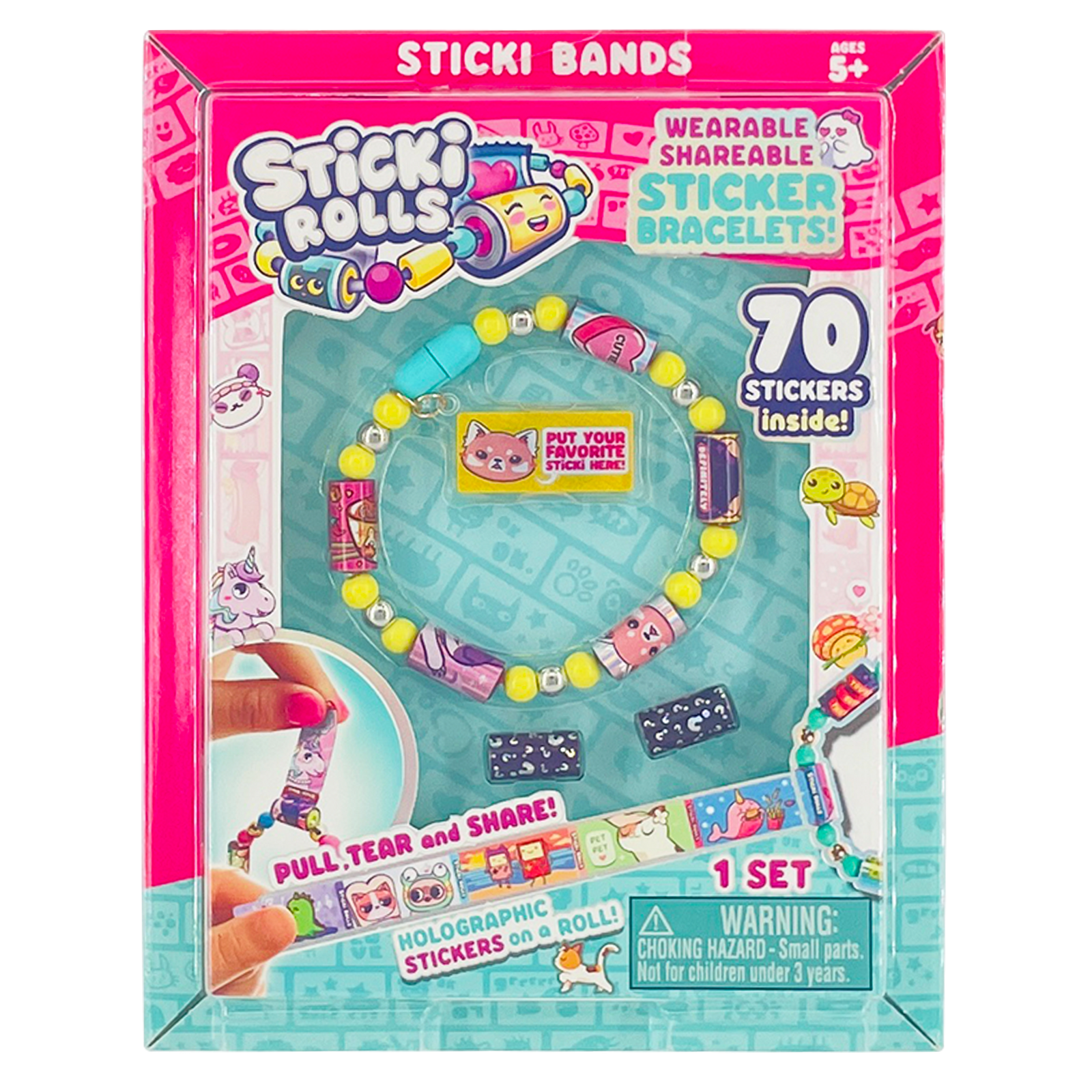 ⭐ WEARABLE & SHAREABLE: Every Sticki Roll on your bracelet is actually a ROLL of 10 holographic mini stickers that you can pull, tear and share! 120 Stickers included, each with different cute, Kawaii characters to decorate your Sticki Book for hours on end!